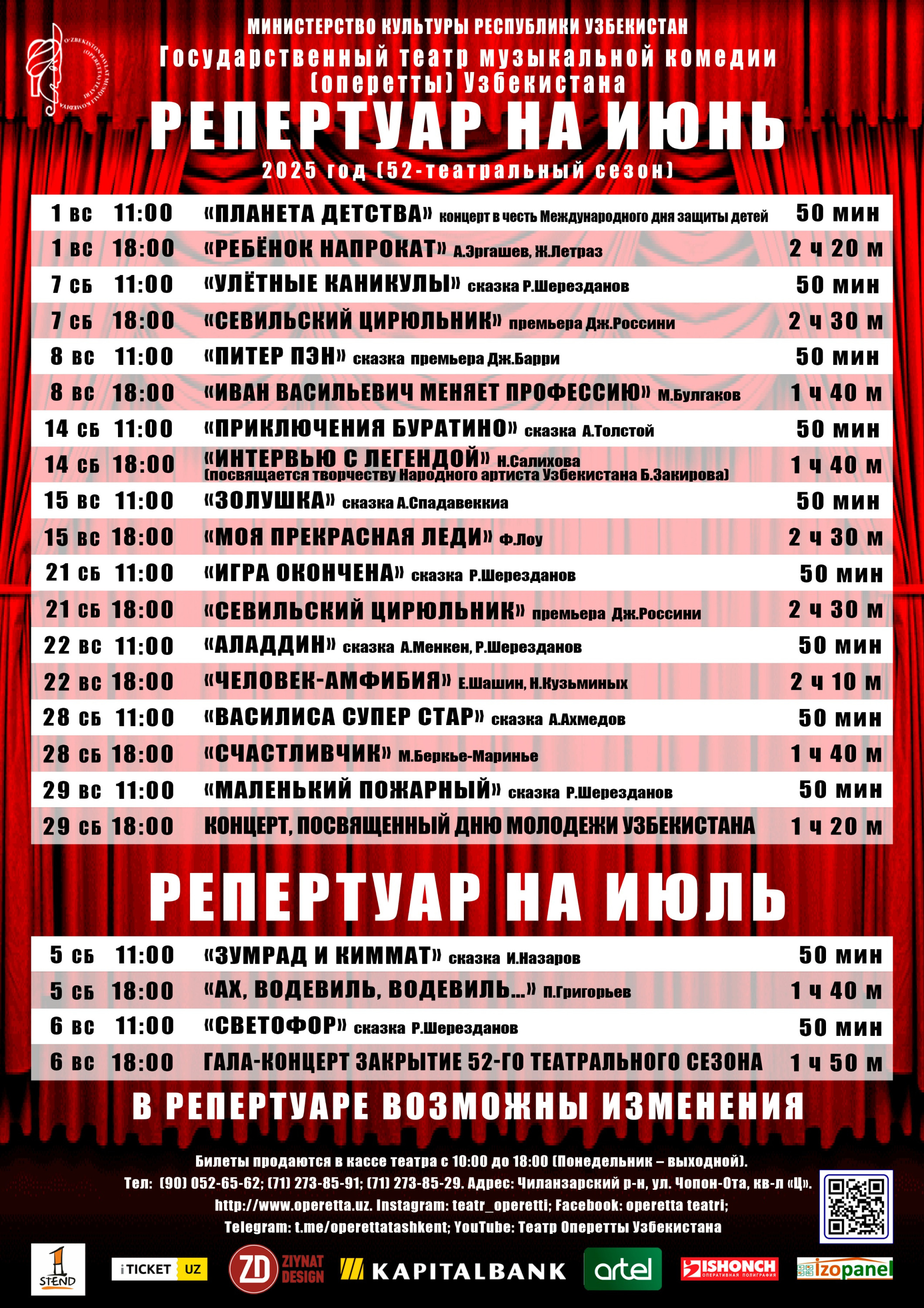 Репертуар на июнь, июль 2025 г.