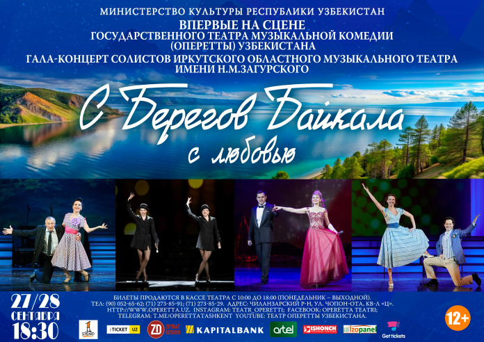 27, 28 сентября 2025 года в 18:30 часов приглашаем всех на Гала-концерт «С БЕРЕГОВ БАЙКАЛА С ЛЮБОВЬЮ» в исполнении солистов солистов Иркутского областного музыкального театра имени Н.М.Загурского. В концерте прозвучат популярныекомпозиции И.Кальмана, Е.Птичкина, А.Пахмутовой, Р.Паулса, И.Дунаевского, А.Зацепина, М.Магомаева, Д.Кандера и др.