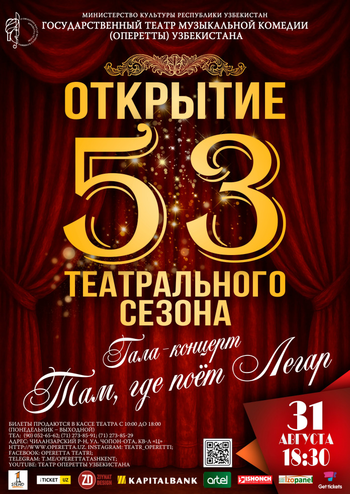 31 августа 2025 года в 18:30 ч. приглашаем всех на Гала-концерт «Там где поёт Легар», посвящённый открытию 53-го театрального сезона.