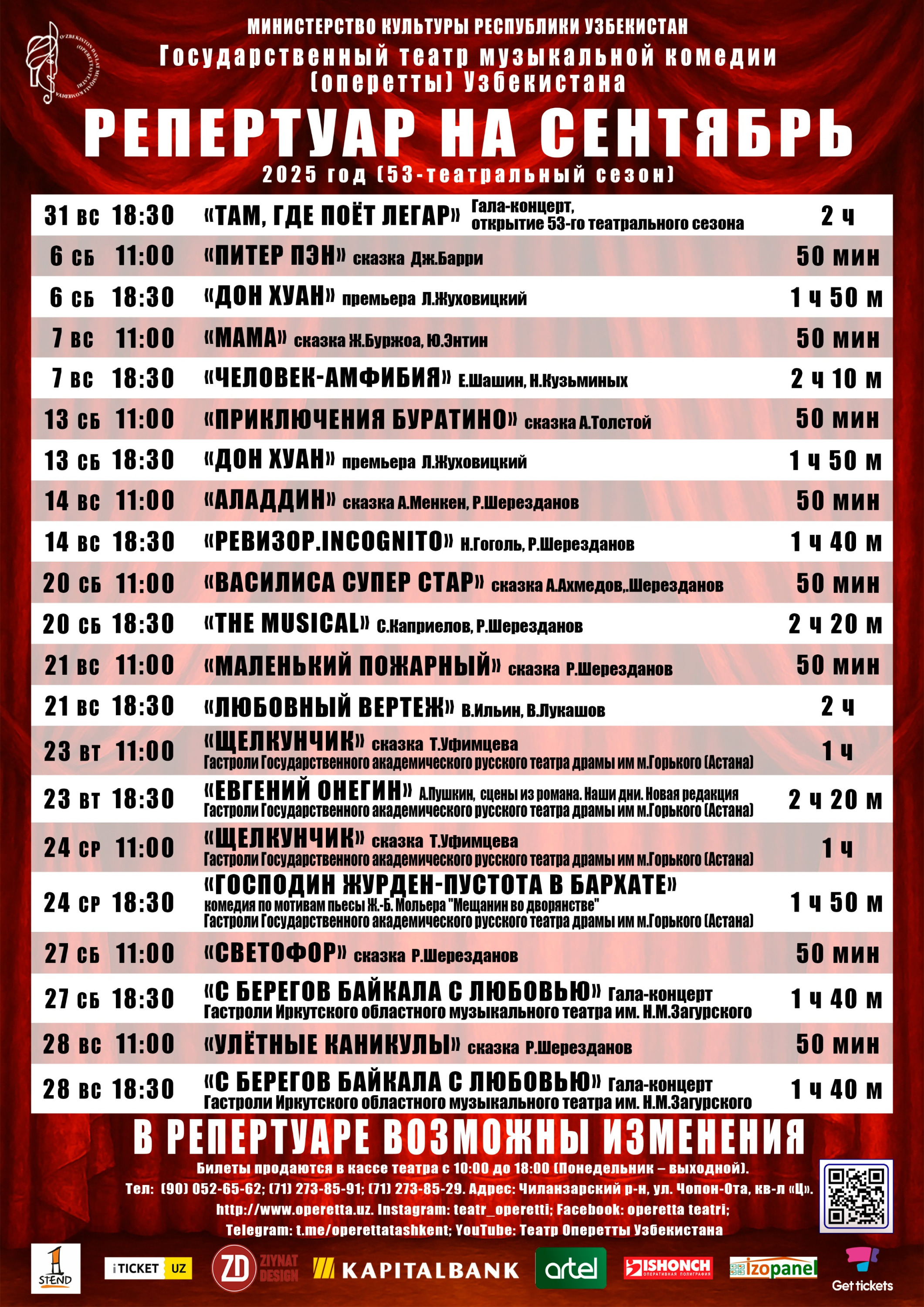 Репертуар на сентябрь 2025 г.