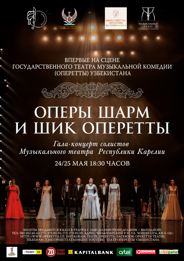 24 и 25 мая 2025 года в Государственном театре музыкальной комедии (оперетты) Узбекистана состоялся гала-концерт «Оперы шарм и шик оперетты» в исполнении солистов оперной труппы Музыкального театра Карелии города Петрозаводска. В концерте прозвучали популярные вокальные номера из «Кармен» Бизе, «Волшебной флейты» и «Дон Жуана» Моцарта, «Севильского цирюльника» Россини, опер Пуччини и Верди, а также оперетт Штрауса и Кальмана. Арии и дуэты из опер и оперетт исполнили ведущие солисты театра - заслуженные артисты Карелии Эльвина Муллина и Павел Назаров; Лауреат I премии на Первом Международном конкурсе певцов им. Халимы Насыровой в Ташкенте Дарья Батова; а также ведущие солисты карельской оперы Маргарита Чемдуж, Юрий Заряднов и Каюм Шодияров. Мероприятие прошло в рамках подписанного двустороннего творческого сотрудничества между Государственным театром музыкальной комедии (оперетты) Узбекистана и Музыкальным театром Республики Карелия.